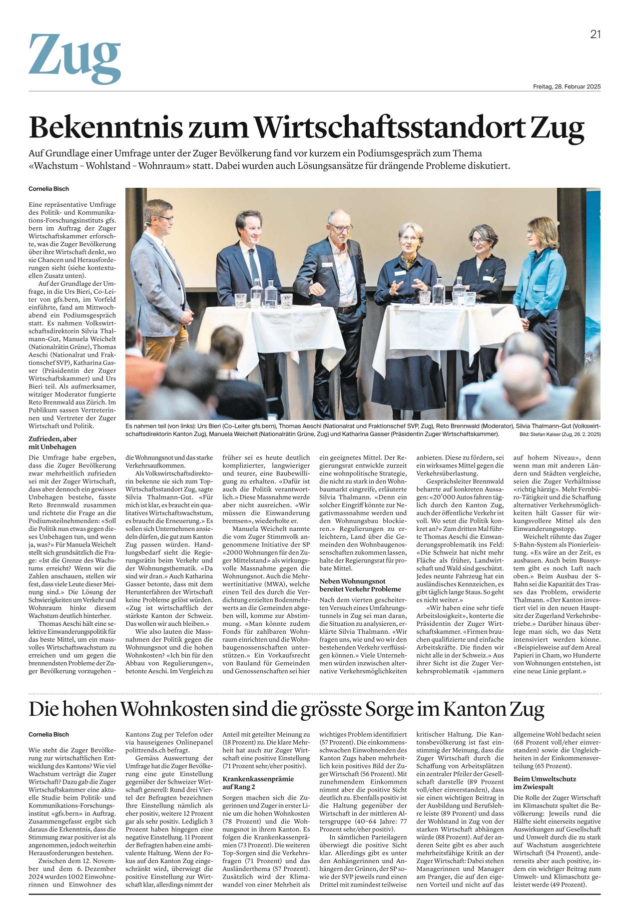 Eine Studie zeigt, dass die Zuger Wohnbevölkerung sehr zufrieden ist. Der Schuh drückt aber bei den hohen Wohnkosten und beim Verkehr. Wieviel kann die kantonale Politik zur Lösung der Probleme beitragen? Welche Rezepte sind erfolgversprechend? Am Anlass der Zuger Wirtschaftskammer wurde das diskutiert.